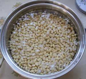 大豆を水につける
